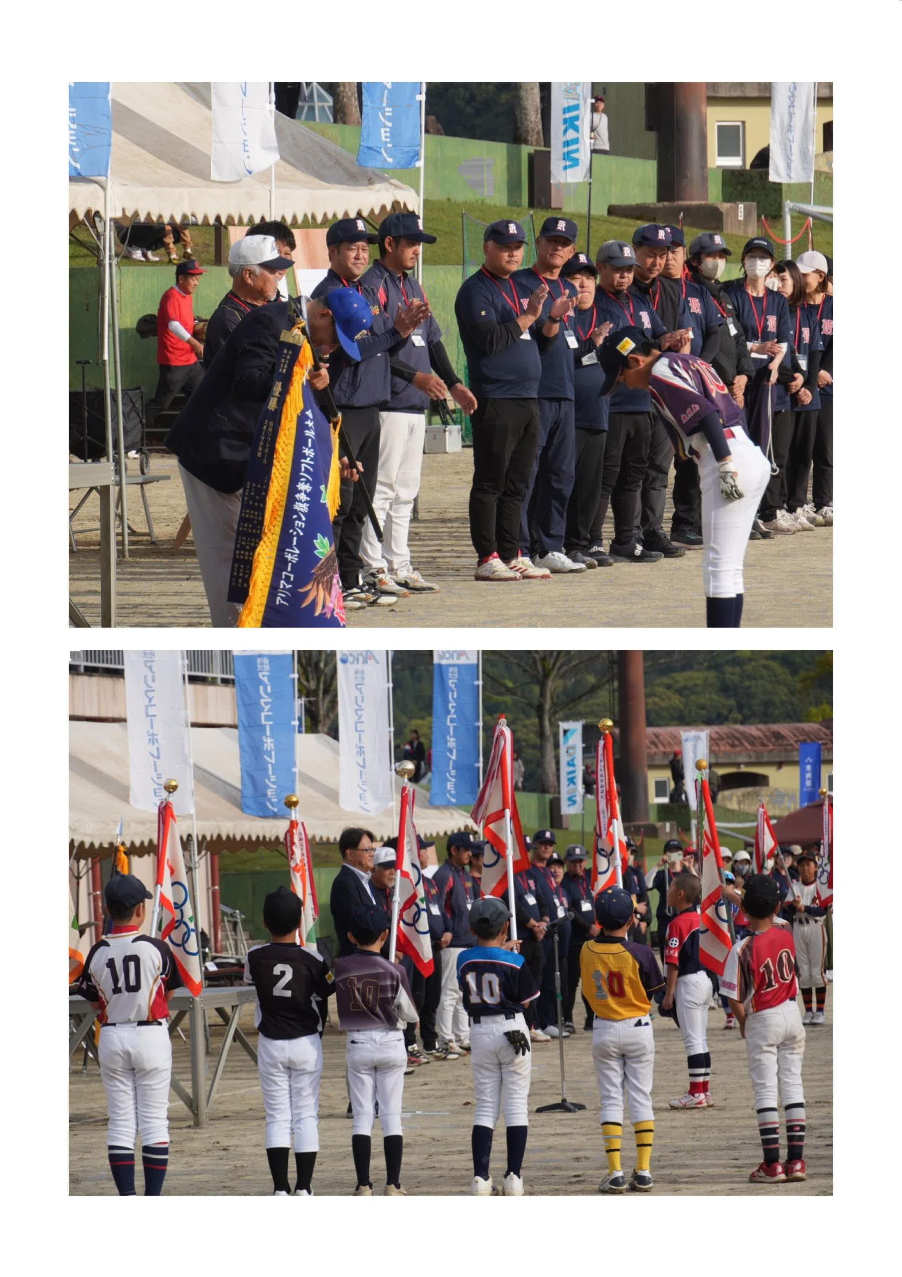 開会式では、第1回大会優勝チームの指宿ソフトボールスポーツ少年団より優勝旗返還